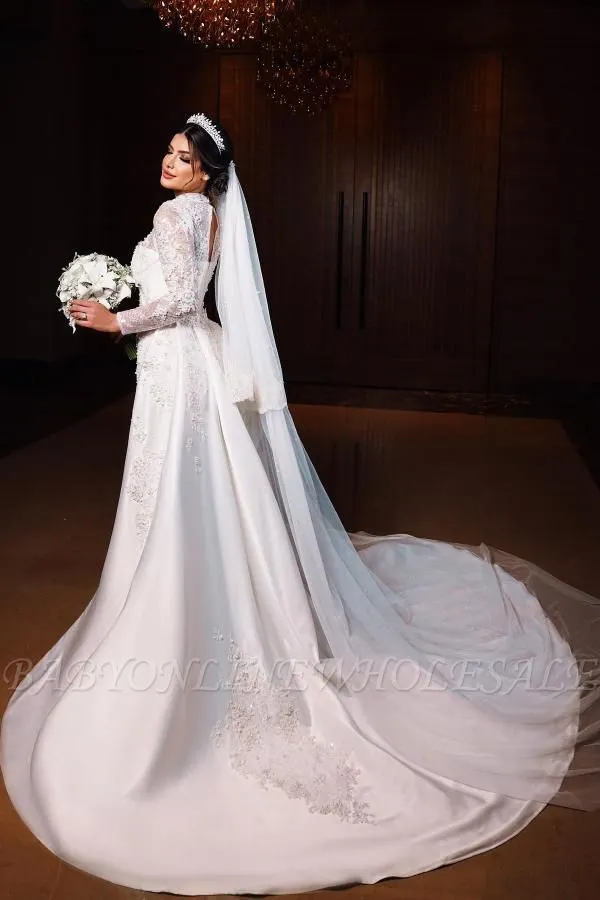 | product name | Charming A-Line Jewel Long Sleeves Wedding Dress with Chapel Train |