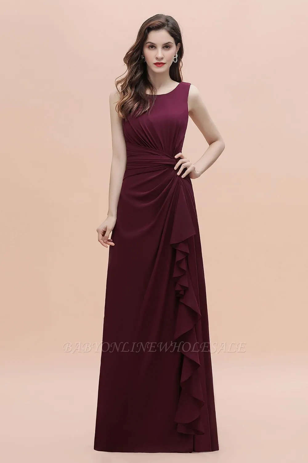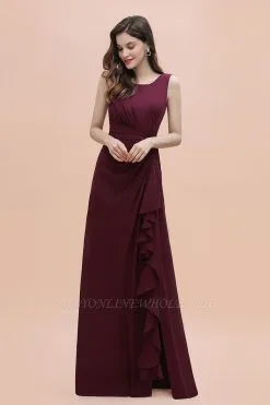 Babyonlinewholesale offers Charming Burgundy Jewel Neck Evening Dress with Side Split online at an affordable price from 100D Chiffon to A-line Floor-length skirts. Shop for gorgeous Sleeveless Bridesmaid Dresses collections for your big day.