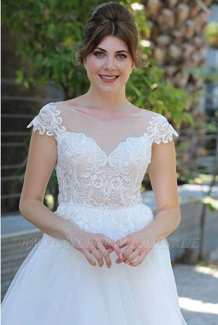 | product name | Charming Cap Sleeves Aline Floral Lace Aline Tulle Wedding Dress |