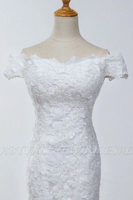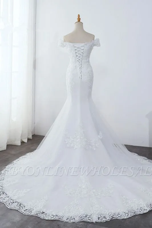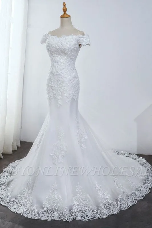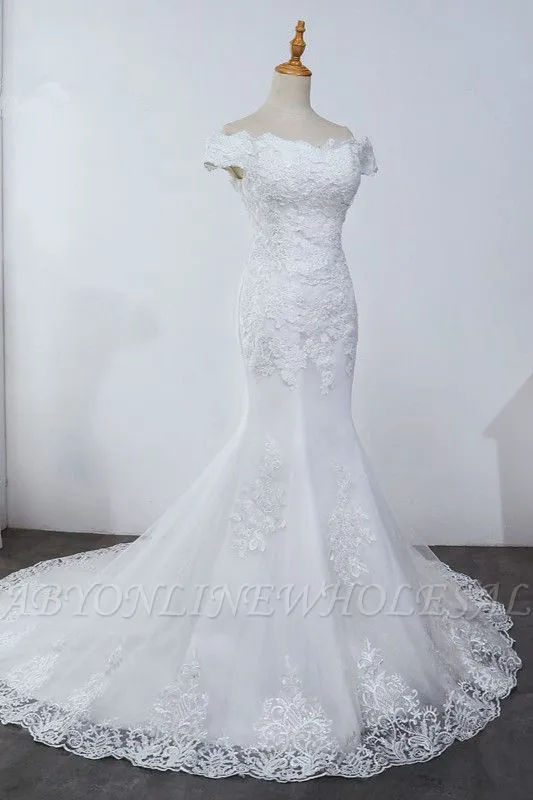 Babyonlinewholesale offers Charming Mermaid Off the Shoulder Floor length Tulle Wedding Dress with Appliques at the lowest price from White,Ivory,Blushing Pink,Red,Champagne,Tulle to Mermaid Floor-length them. Stunning yet affordable Short Sleeves .
