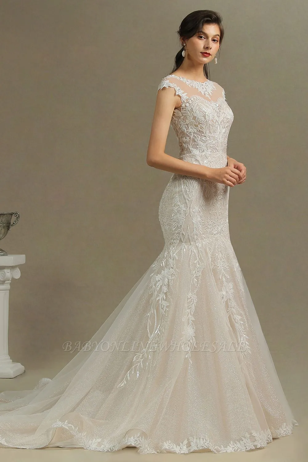 Babyonlinewholesale offers Charming Mermaid Wedding Gown Lace Appliques Cap Sleeve Garden Wedding Dress at a good price from Same as Picture,Champagne,Tulle to Mermaid Floor-length them. Stunning yet affordable Sleeveless .
