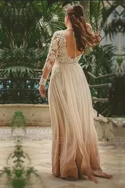 Charming V-neck Mermaid Long Sleeves A-Line Tulle Wedding Dress With Appliques