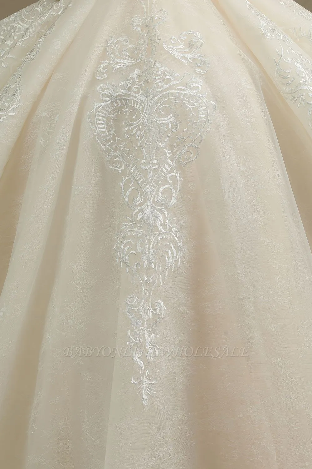 Looking for in Tulle, A-line style, and Gorgeous work? Babyonlinewholesale has all covered on this elegant Charming Short Sleeve Garden Bridal Gown Sweetheart Wedding Dress Sweep Train.