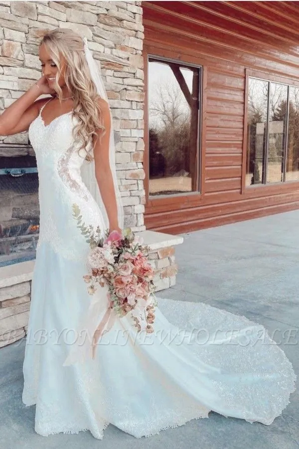 Looking for in Satin, Mermaid style, and elegant Lace work? Babyonlinewholesale has all covered on this unique Charming Sleeveless V-Neck Mermaid Wedding Dress V-Neck Gold Appliques Long Bridal Dress.