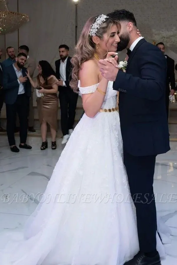 Off The Shoulder Sweetheart Gems Luxury Flowers Wedding Dress