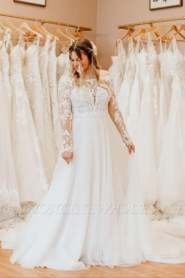 Gorgeous Ivory Off-the-shoulder Lace Long Sleeves Wedding Dress