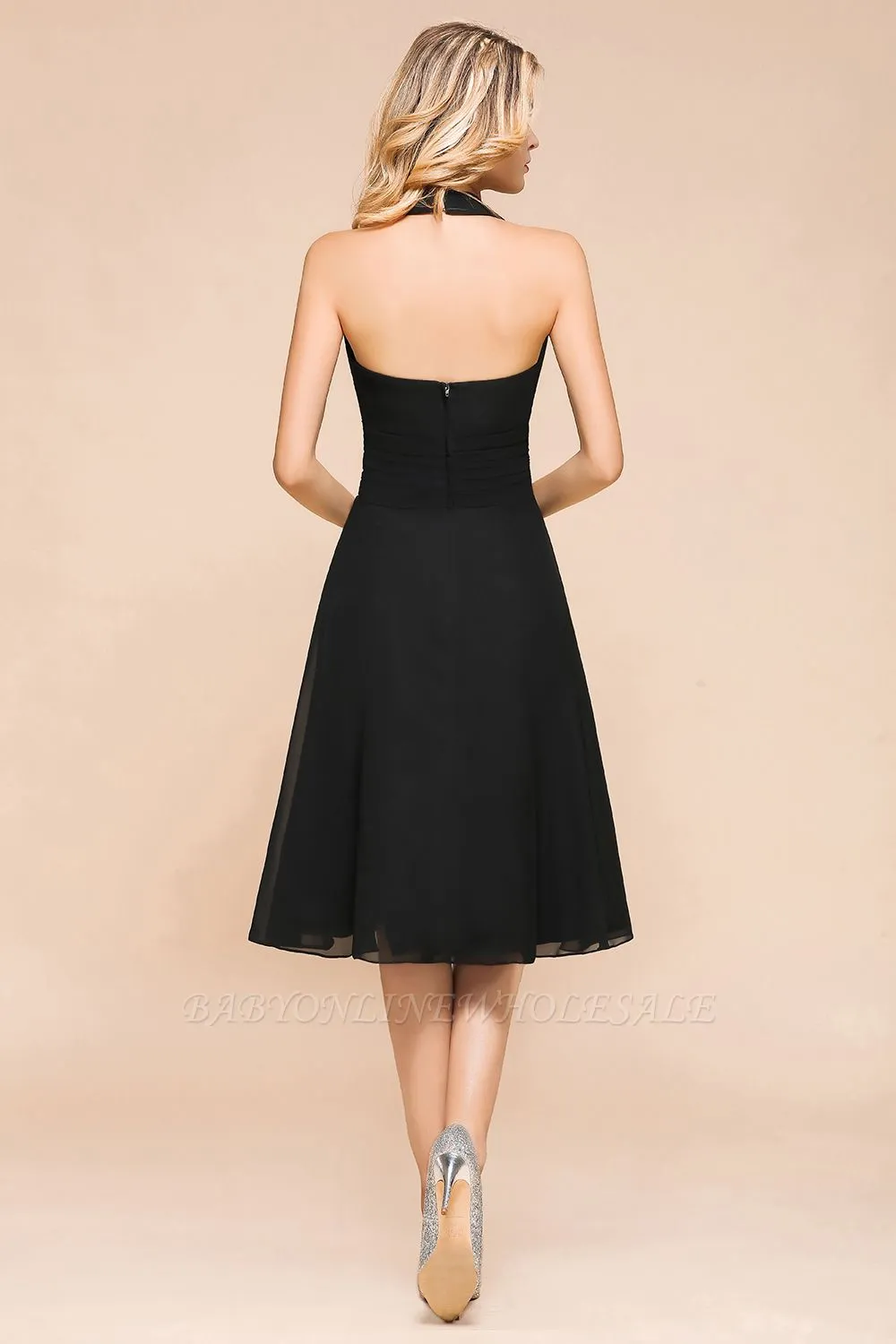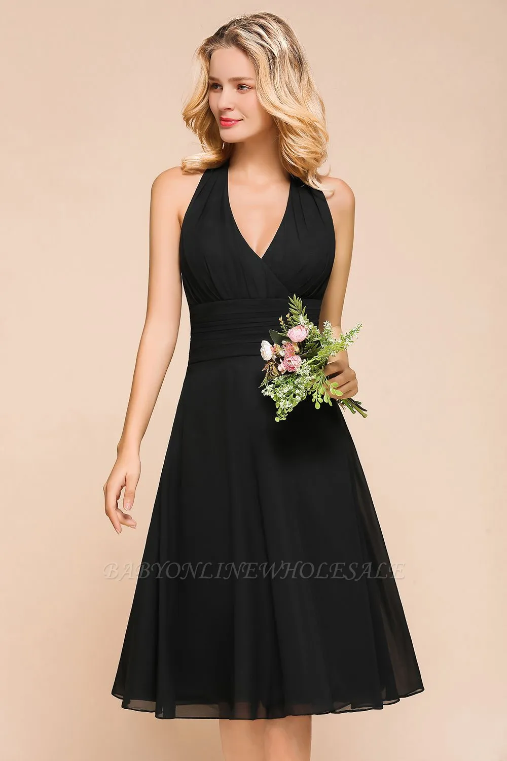 Looking for in 100D Chiffon, A-line style, and Gorgeous Draped work? Babyonlinewholesale has all covered on this elegant Chic Halter Black V-Neck Knee Length Party Dress.