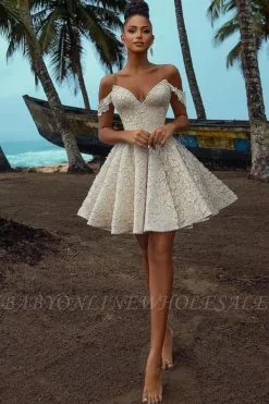 Looking for in Lace style, and dreamful work? Babyonlinewholesale has all covered on this fashion Chic Off Shoulder Floral Pattern V-Neck Homecoming Dress.