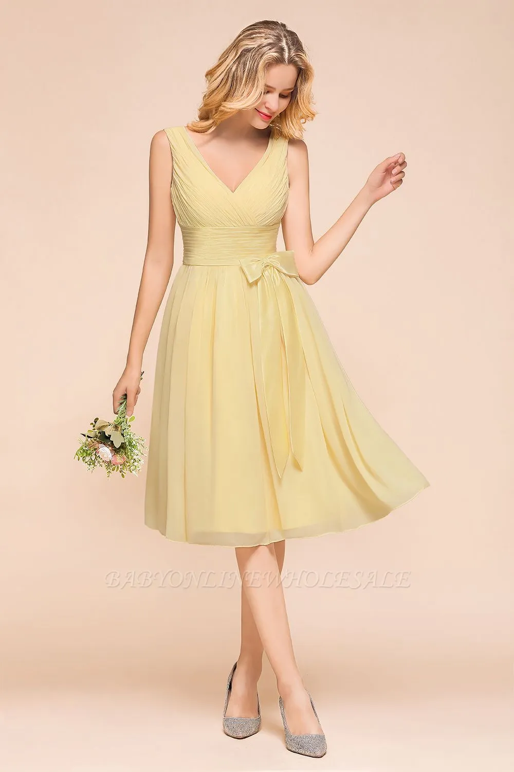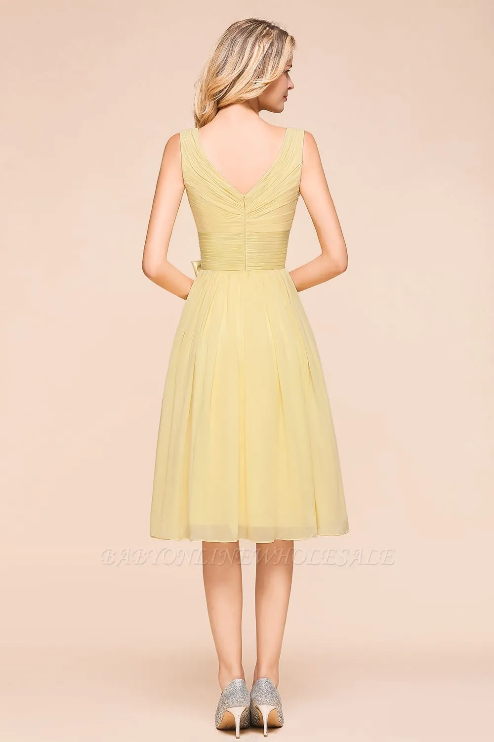 The gorgeous Chic Sleeveless V-Neck Chiffon Short Dress will stun every girl. The 100D Chiffon dress will add extra elegance to your wholesale look.