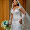 Sweetheart White Lace Mermaid Wedding Dress With Court Train
