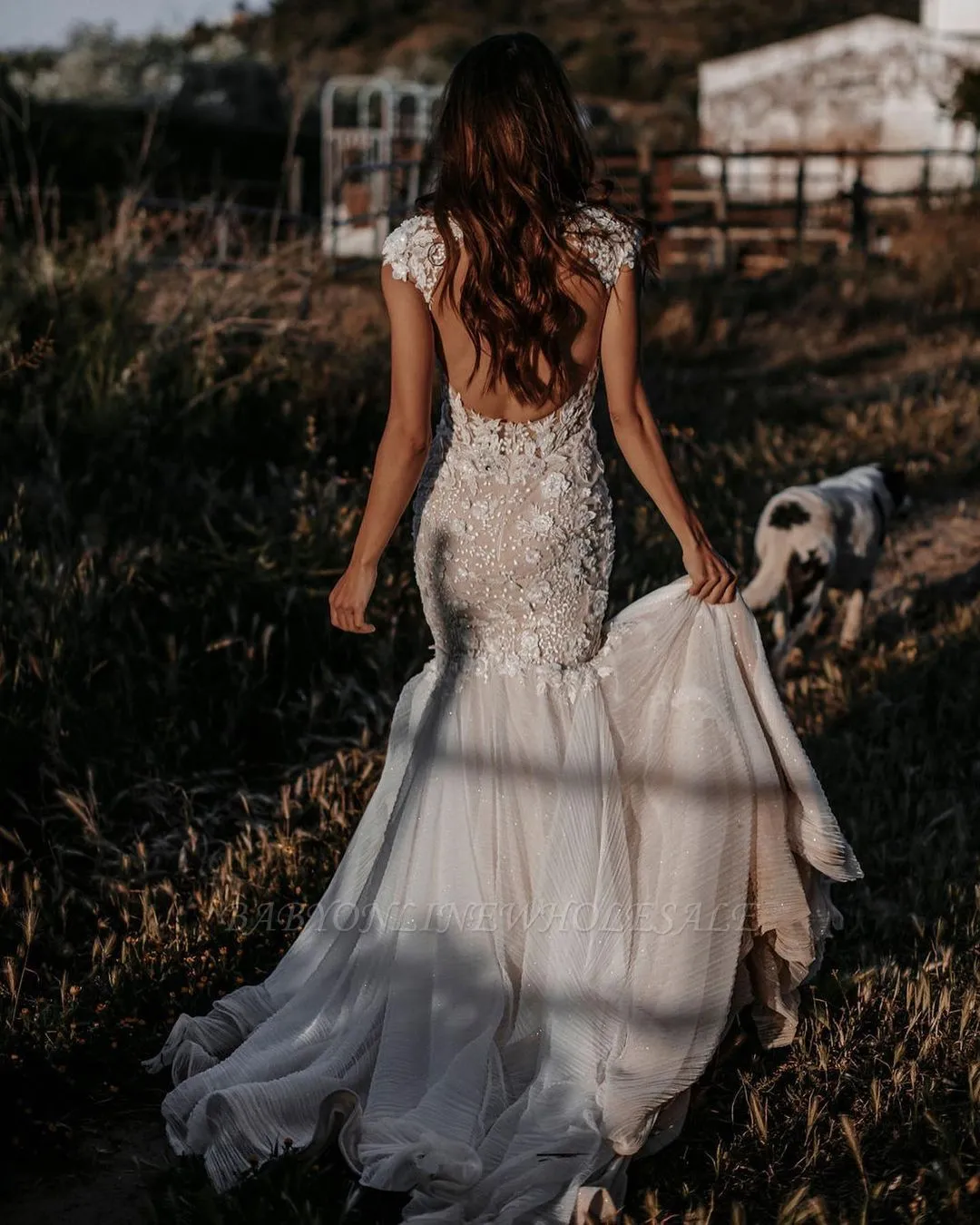 Mermaid Glamorous Straps Appliques Backless Sleeveless Bridal Gown