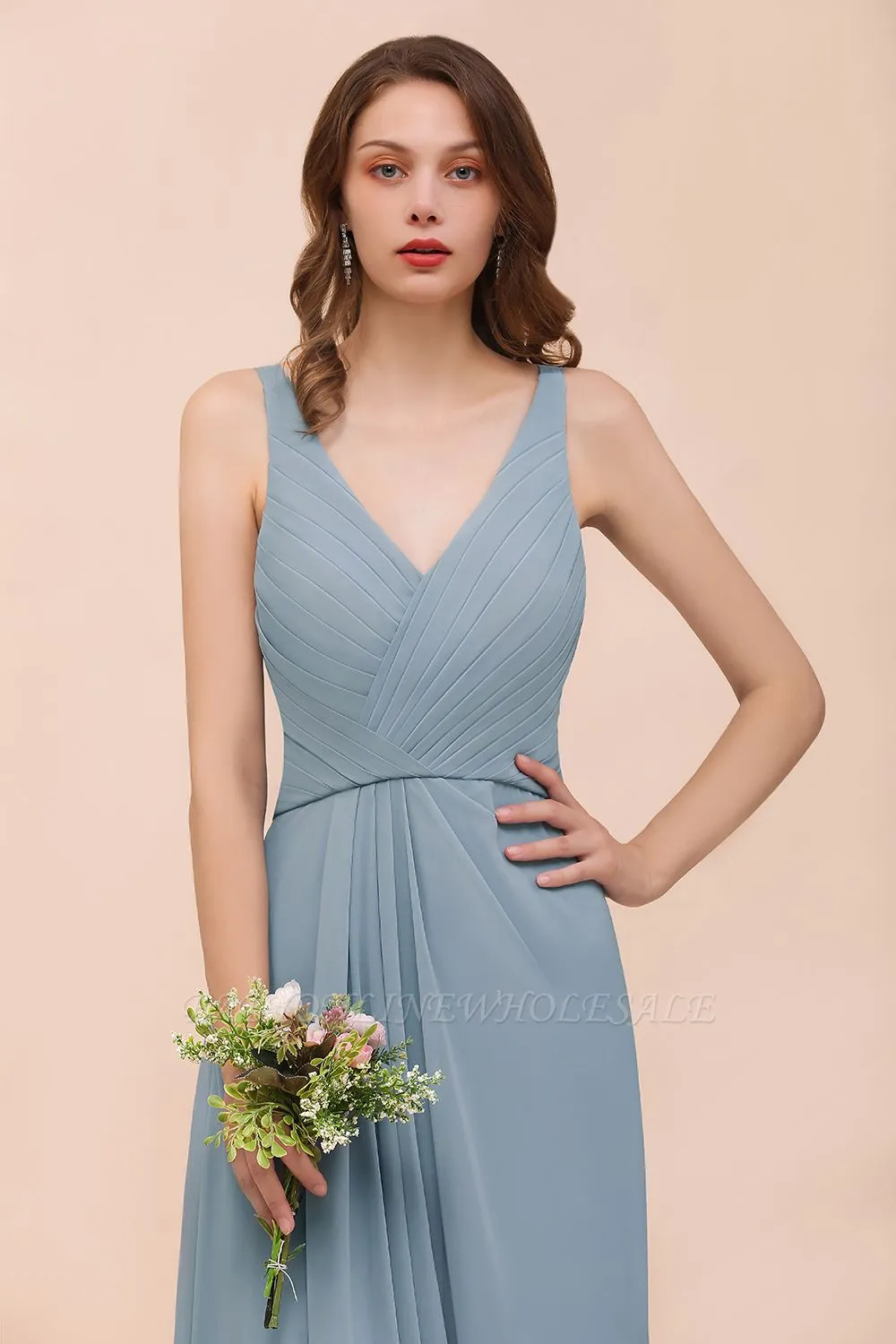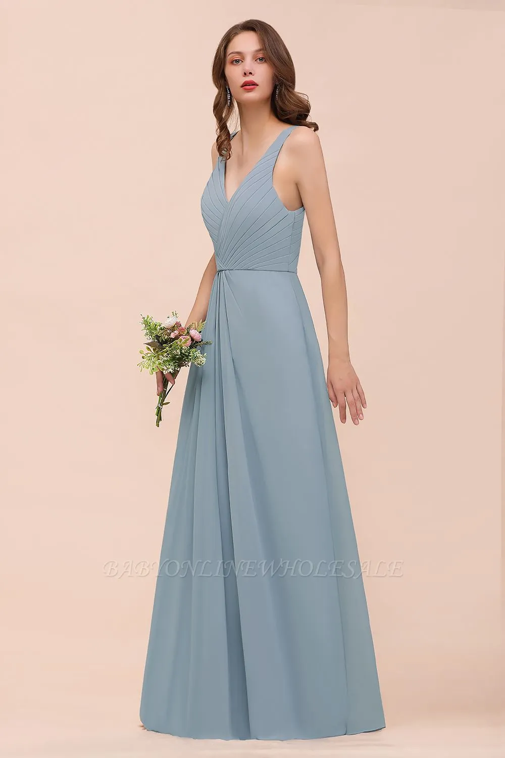 | product name | Chic V-Neck Sleeveless Wedding Wear Dress Floor Length Aline Chiffon Bridesmaid Dress |