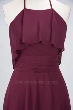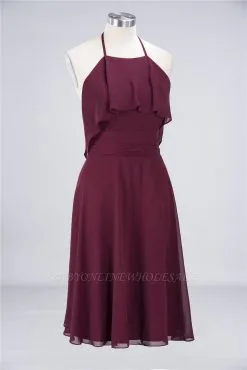 | product name | Chiffon A-Line Halter Sleeveless Short Bridesmaid Dress with Ruffles |