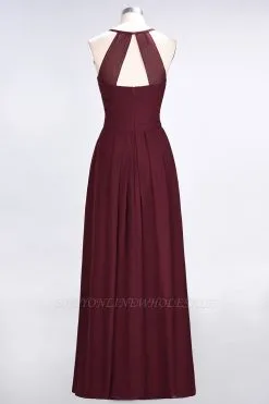 | product name | Chiffon A-Line Halter V-Neck Sleeveless Long Bridesmaid Dress with Ruffles |