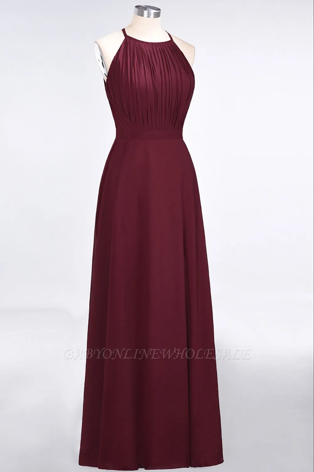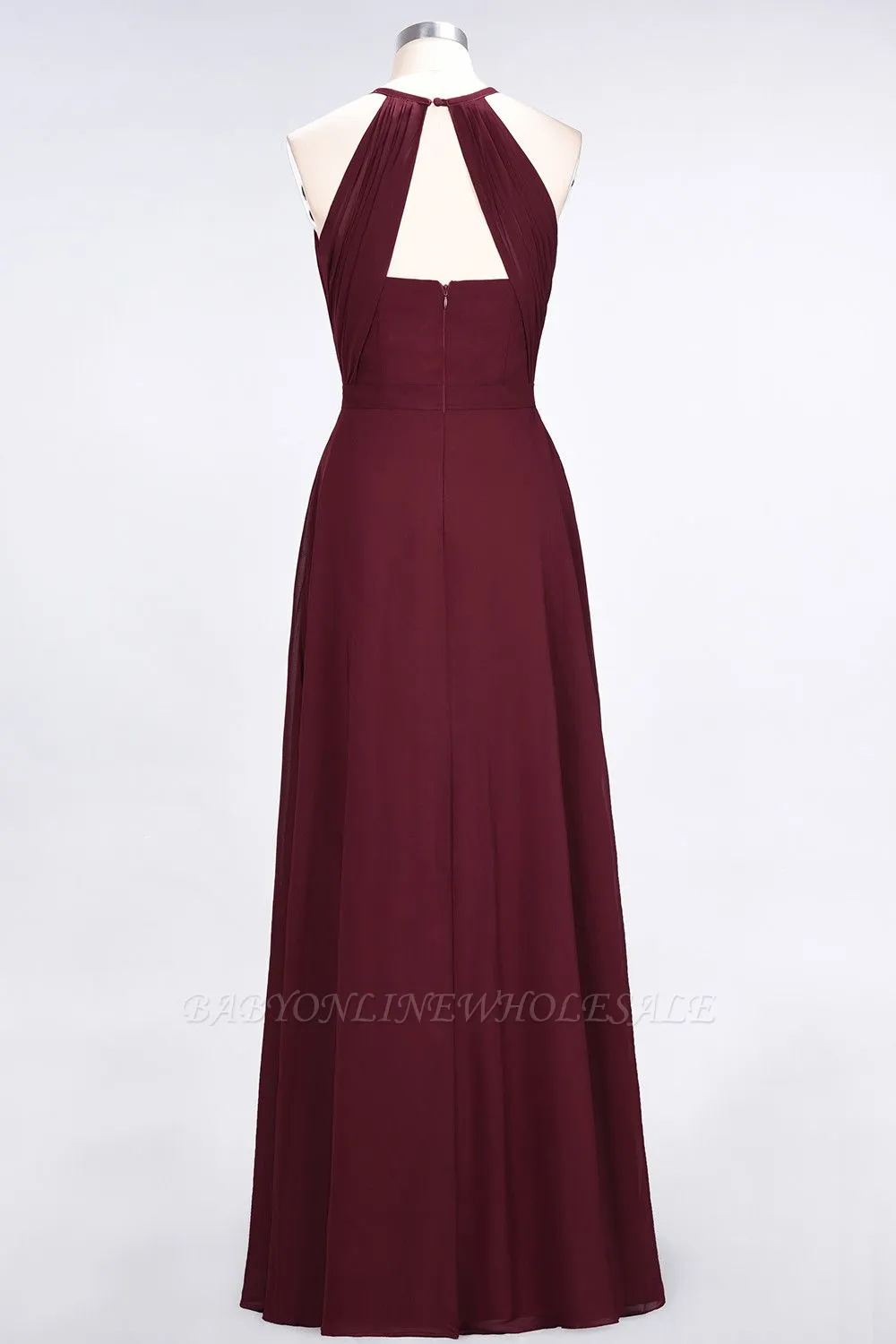 | product name | Chiffon A-Line Jewel Sleeveless Long Bridesmaid Dress with Ruffles |