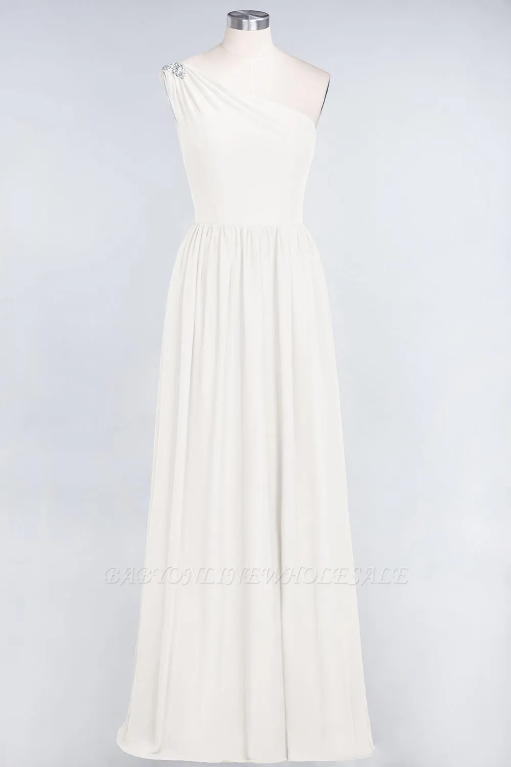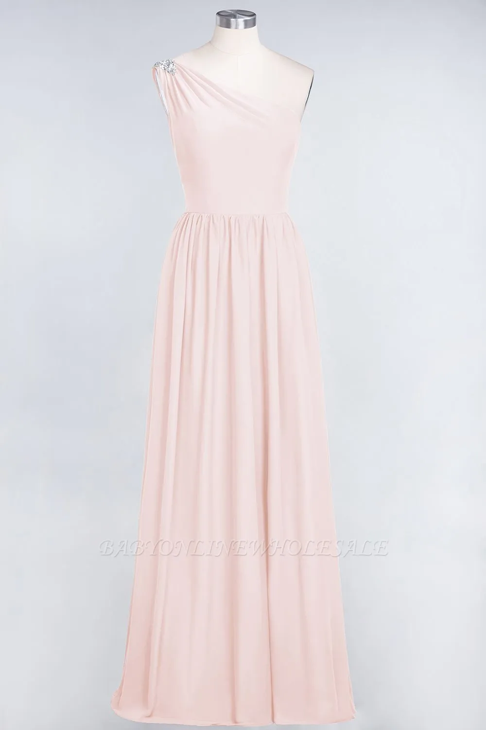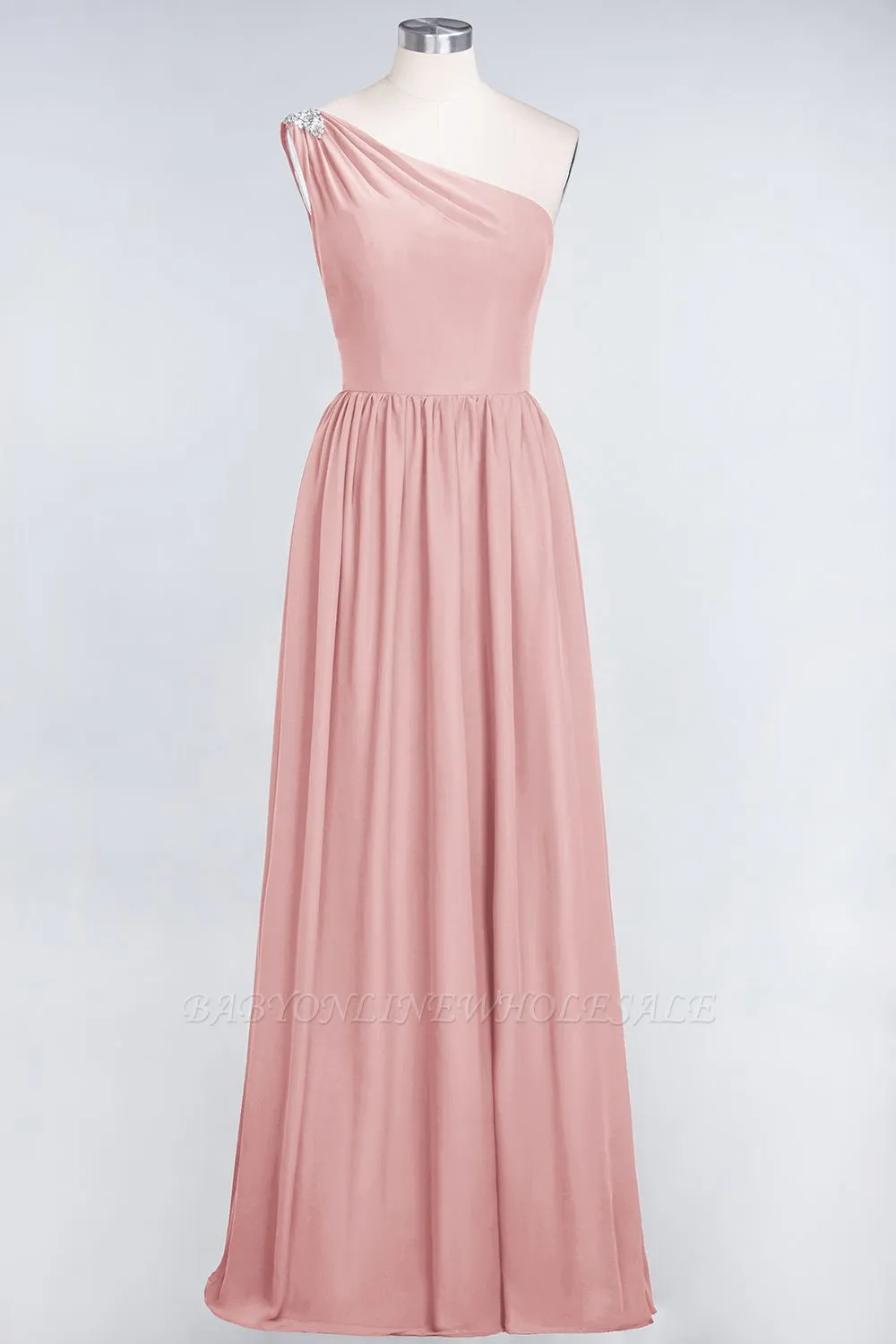 | product name | Chiffon A-Line One-Shoulder Sleeveless Ruffles Long Bridesmaid Dress with Beadings |