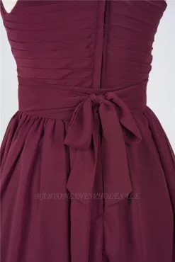 | product name | Chiffon A-Line One-Shoulder Sleeveless Short Bridesmaid Dress with Ruffles |