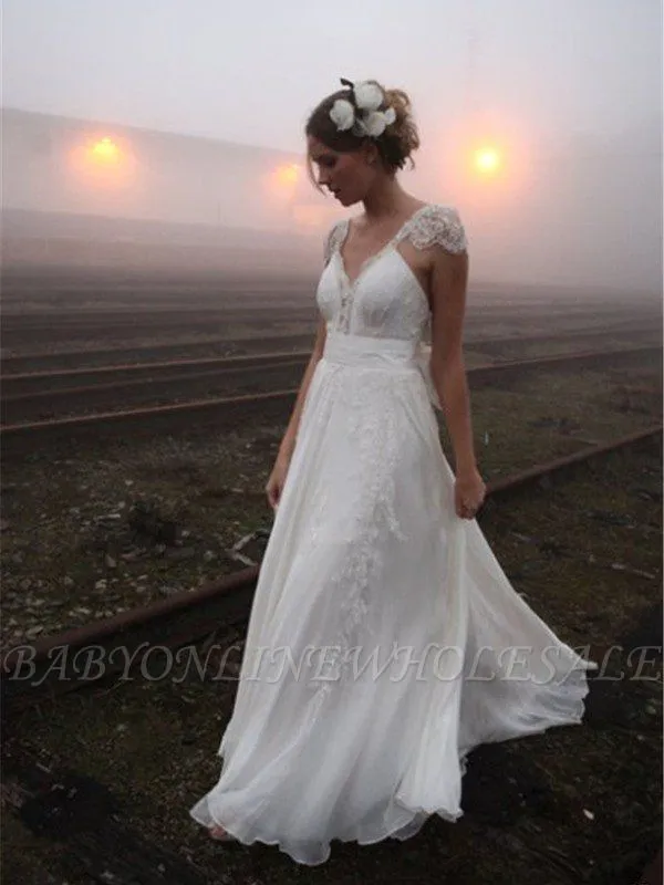 | product name | Chiffon A-Line Sleeveless V-neck Floor-Length Lace Wedding Dresses |