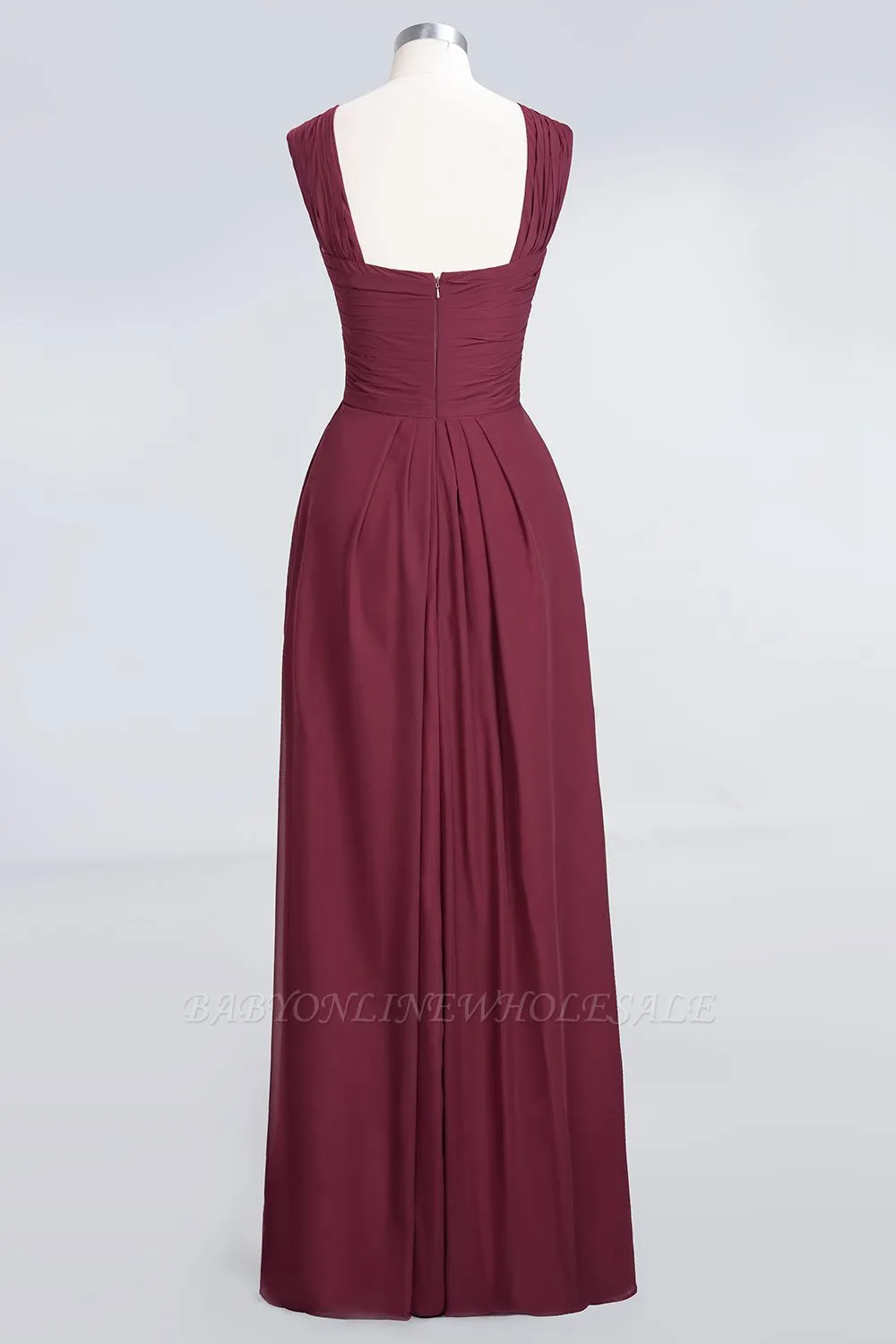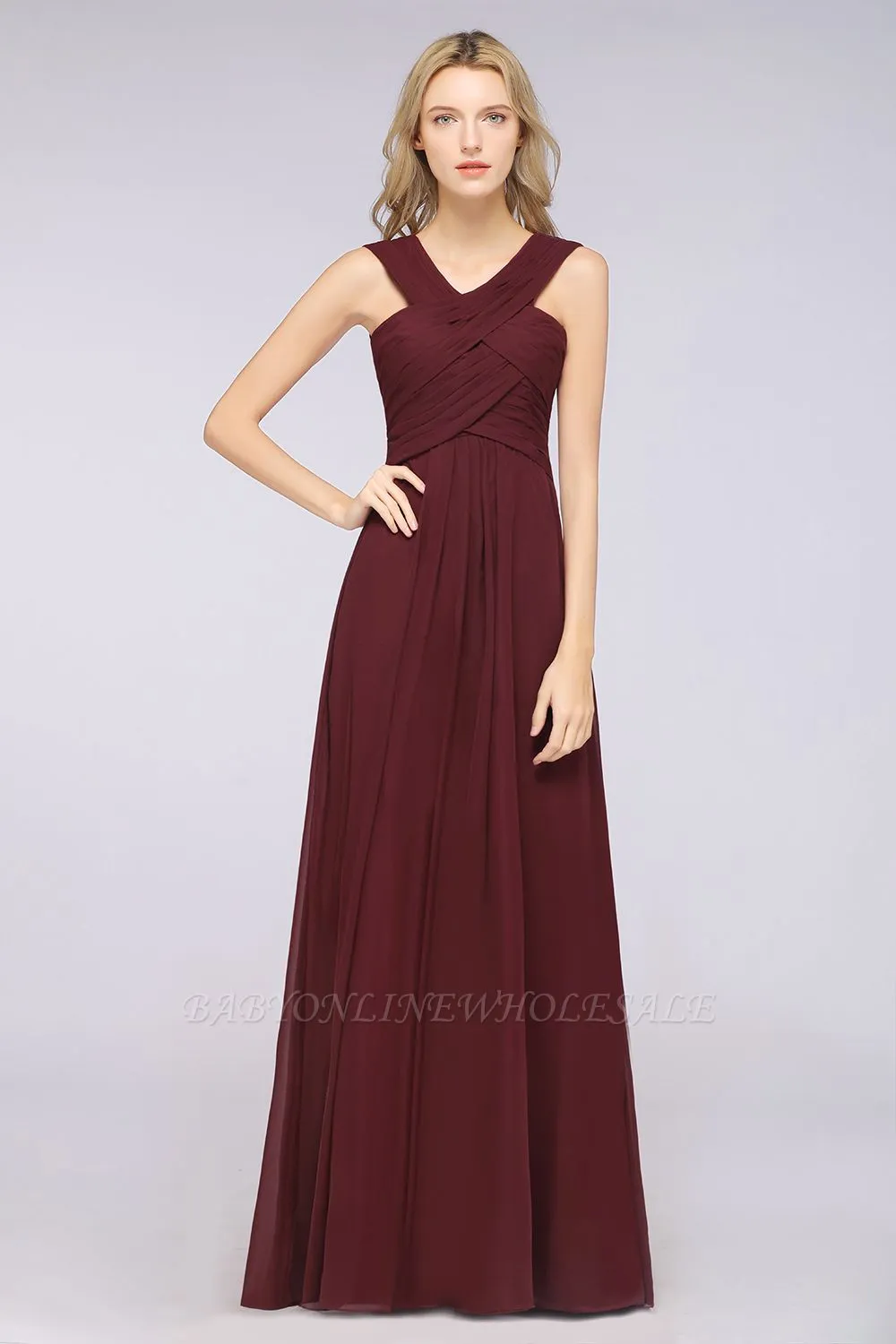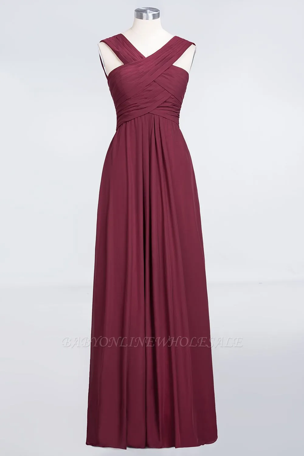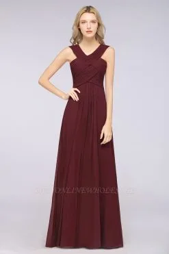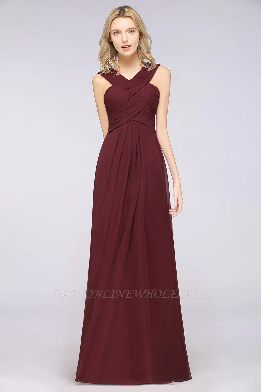 | product name | Chiffon A-Line V-Neck Straps Sleeveless Long Bridesmaid Dress with Ruffles |