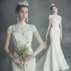 Be the first to review “Collar Short Sleeve Mermaid Wedding Dress Slim Floral Lace Bridal Gown” Cancel reply
