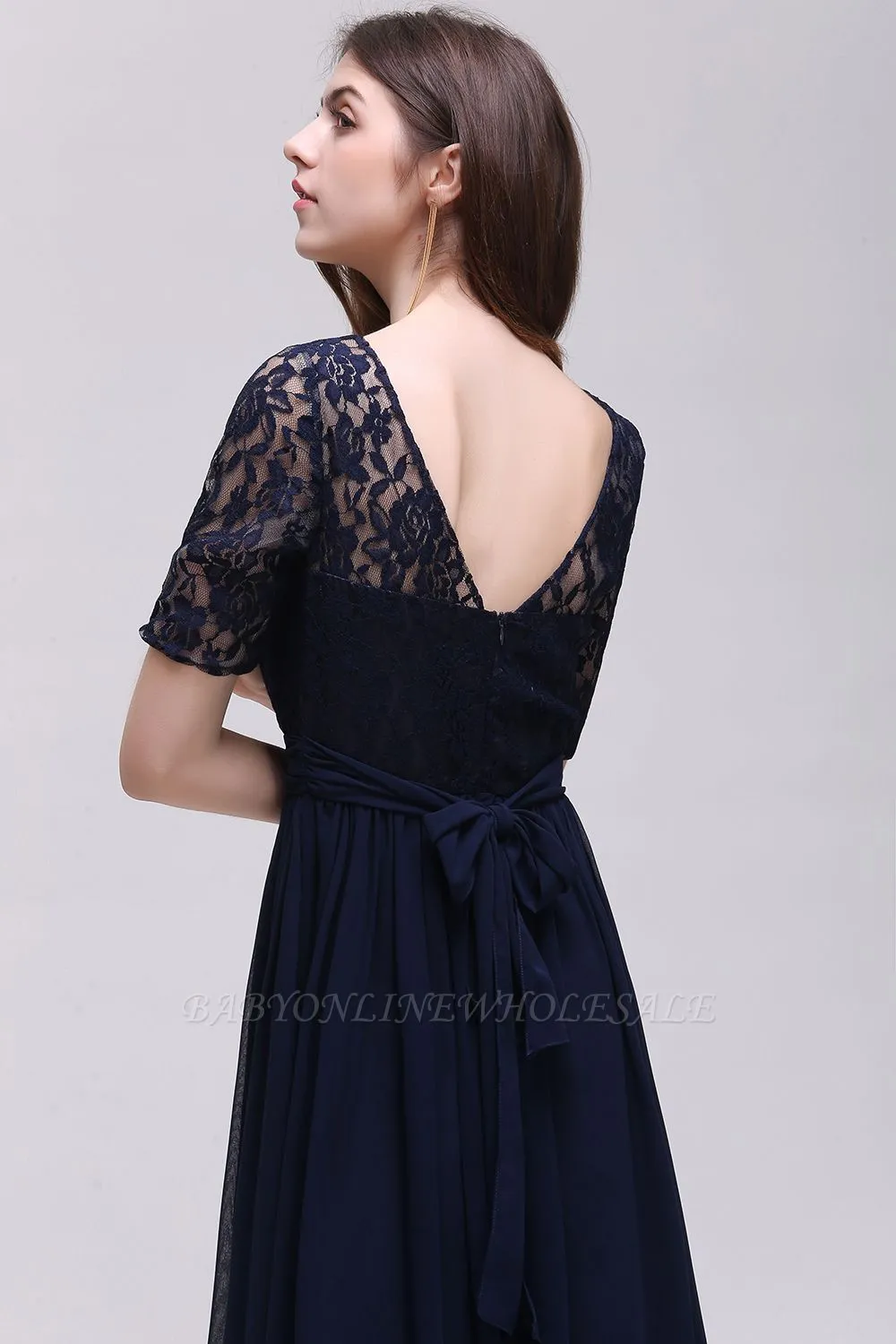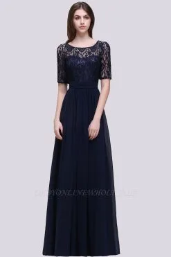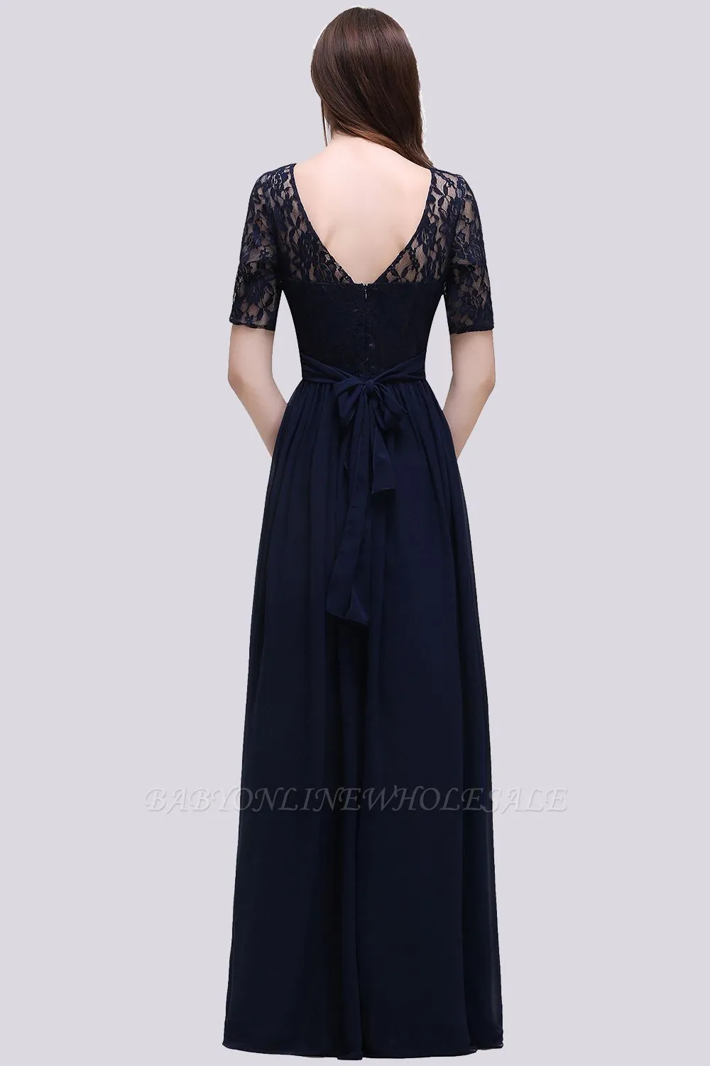 | product name | Custom Made A-line Chiffon Lace Scoop Half-Sleeve Floor-Length Bridesmaid Dress with Round back |