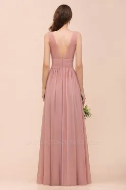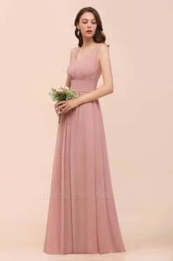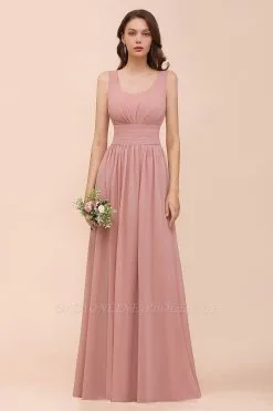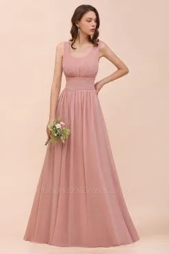 | product name | Dusty Pink Suqare Neck Aline Bridesmaid Dress Sleeveless Evening Party Dress |