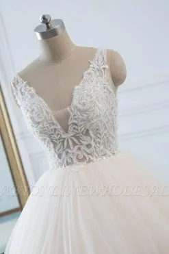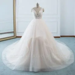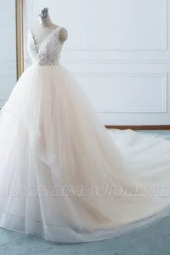 Babyonlinewholesale offers Elegant A-Line V-neck Floor Length Tiered Tulle Wedding Dress with Ruffles at the lowest price from White,Ivory,Blushing Pink,Red,Champagne,Tulle to A-line Floor-length them. Stunning yet affordable Sleeveless .