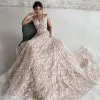 Charming White Floral Lace Tulle Plus Size Bridal Dress With Long Sleeves