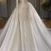 Elegant Jewel Long-Sleeves Tulle Lace Long Wedding Dress With Court Train