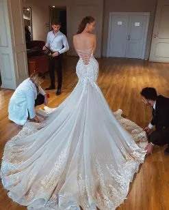 Backless Strapless Sexy Mermaid Wedding Dresses | Cathedral Train Lace Dresses For Weddings