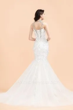 Luxury Crystals Mermaid Wedding Dresses | Off-the-Shoulder Appliques Bridal Gowns