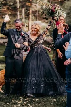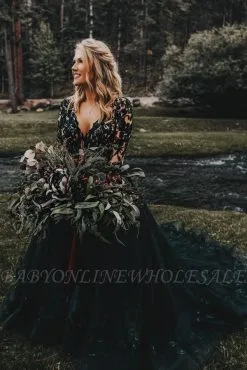Babyonlinewholesale offers Elegant black V-neck a-line ball gown prom dress at a good price from Same as Picture,White,Ivory,Red,Champagne,Black,Tulle to A-line Floor-length them. Stunning yet affordable Long Sleeves .