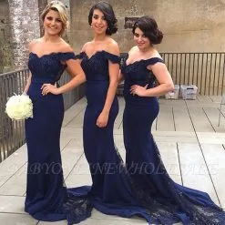 Be the first to review “Elegant Blue Off The Shoulder Lace Wedding Party Dress Mermaid Sweep Train Bridesmaid Dresses” Cancel reply