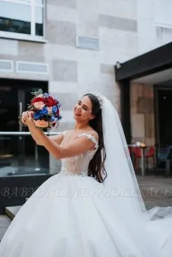 | product name | Elegant cap sleeves White tulle ball gown wedding dress |