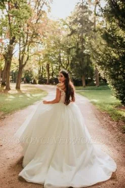 Be the first to review “Elegant Cap Sleeves White Tulle Ball Gown Wedding Dress” Cancel reply