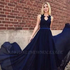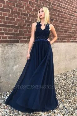 | product name | Elegant Chiffon Lace Bridesmaid Dress, Chic Sleeveless Navy Blue Wedding Party Dress |
