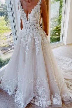 The gorgeous Elegant Floor length ivory lace princess wedding dress will stun every girl. The Tulle dress will add extra elegance to your wholesale look.
