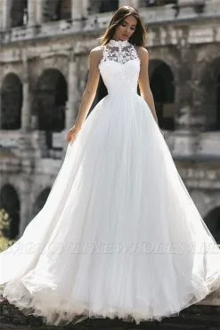 | product name | Elegant High Neck Sleeveless Appliques A-Line Floor-Length Wedding Dresses |