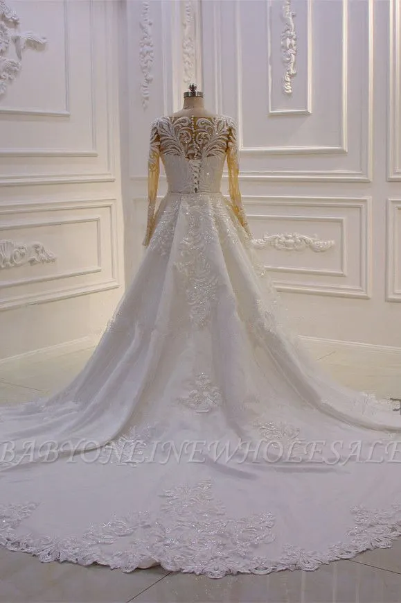 | product name | Elegant Jewel Long Sleeves Tulle Lace Sparkle Ivory Wedding Dress |