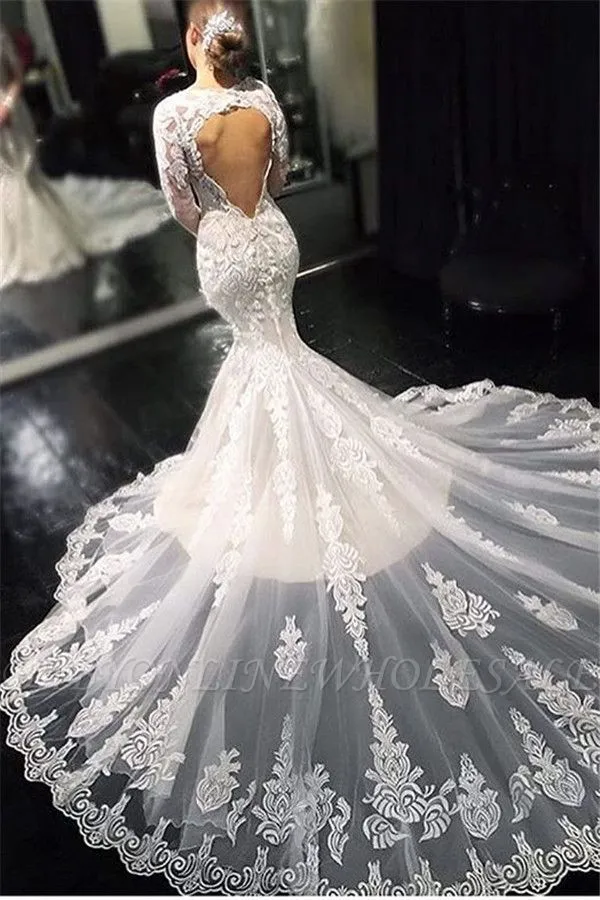 | product name | Elegant Lace Appliques Long Sleeves Mermaid Wedding Dresses |