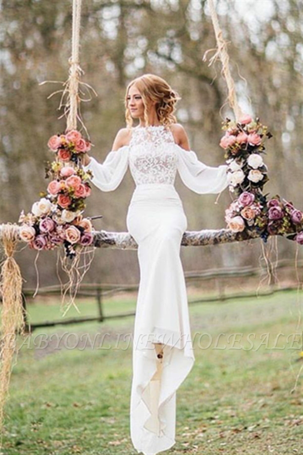 Babyonlinewholesale offers Elegant Lace Long-Sleeves Mermaid Chiffon Wedding Dress at a cheap price from White,Ivory,Champagne, 100D Chiffon,Lace to Mermaid them. Stunning yet affordable Long Sleeves .