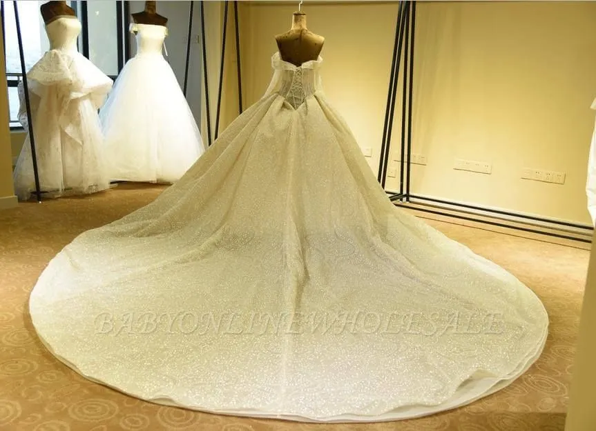 Off-the-Shoulder Sweetheart Tulle Aline Princess Wedding Dress