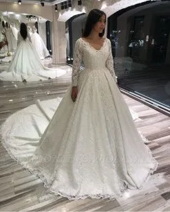 | product name | Elegant Long Sleeve Wedding Dress V-Neck Aline Bridal Dress |
