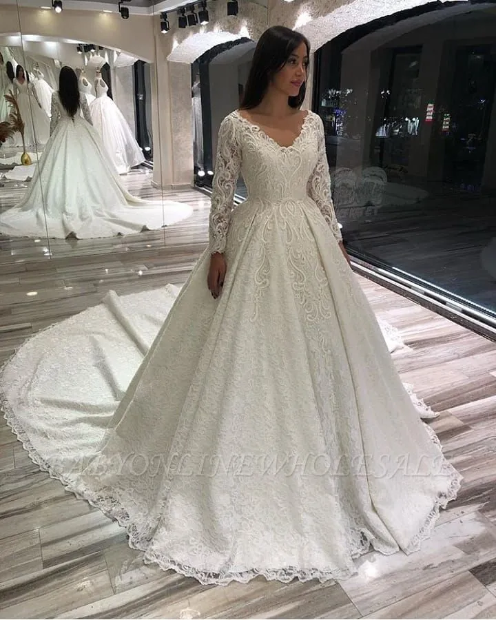 Babyonlinewholesale offers Elegant Long Sleeve Wedding Dress V-Neck Aline Bridal Dress at a good price from Same as Picture,White,Ivory,Champagne,Black,Lace to A-line them. Stunning yet affordable Long Sleeves .