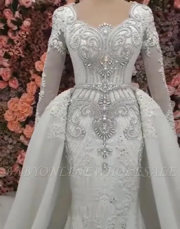 Looking for in , Mermaid style, and Gorgeous Crystal work? Babyonlinewholesale has all covered on this elegant Elegant Long sleeves Mermaid Wedding Dresses with Overskirt.