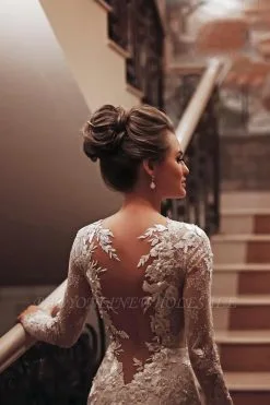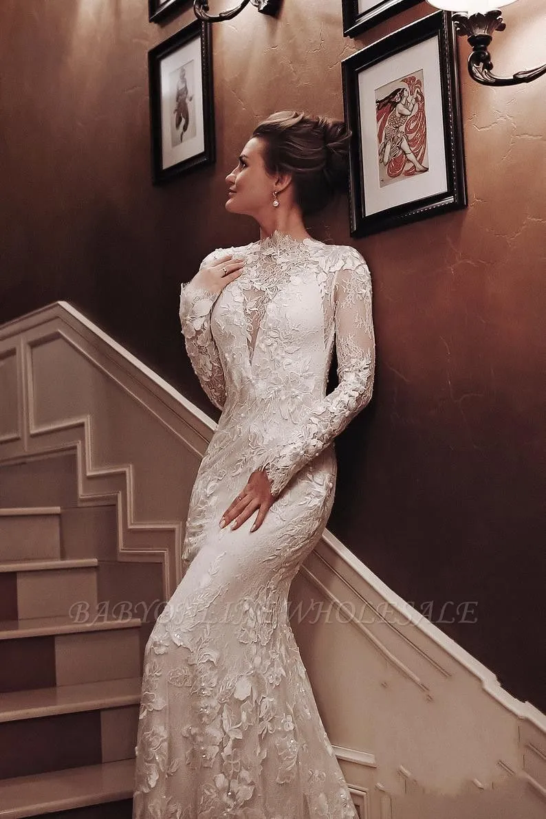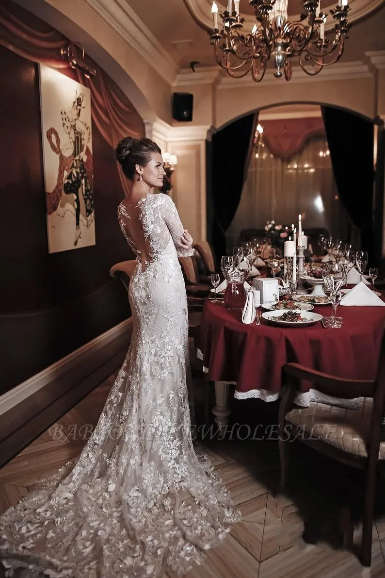 Looking for in Lace, Mermaid style, and elegant Lace work? Babyonlinewholesale has all covered on this unique Elegant Long Sleeves White Lace Mermaid Wedding Dress.