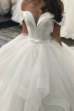 | product name | Elegant Off Shoulder Ball Gown Puffy Layers Wedding Dress |