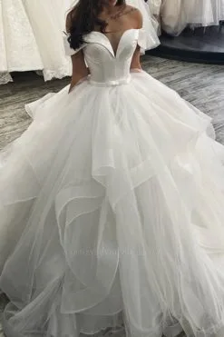 | product name | Elegant Off Shoulder Ball Gown Puffy Layers Wedding Dress |