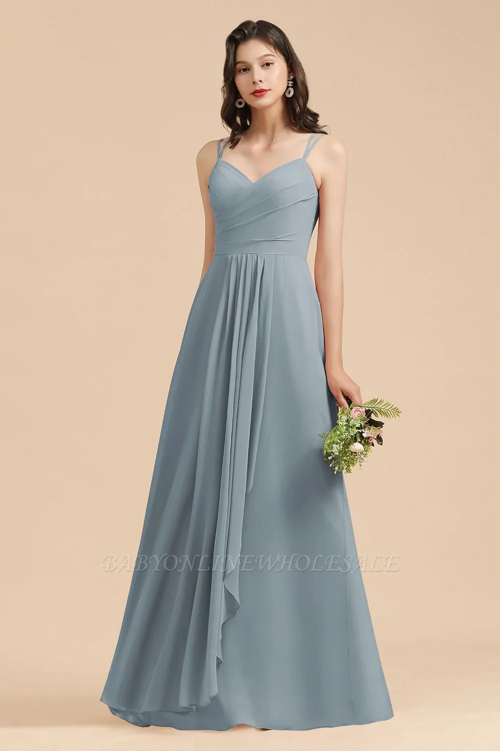 Looking for Bridesmaid Dresses in 100D Chiffon, A-line style, and Gorgeous Draped work? Babyonlinewholesale has all covered on this elegant Elegant Ruched Chiffon Bridesmaid Dress Dusty Blue V-Neck Wedding Guest Dress.