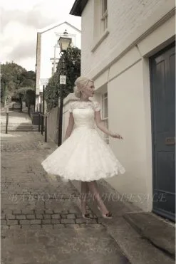 Babyonlinewholesale offers Elegant Short Sleeves Tulle Lace Appliques Mini Wedding Dress at a good price from Same as Picture,White,Ivory,Champagne,Black,Lace to A-line Tea-length them. Stunning yet affordable Short Sleeves .